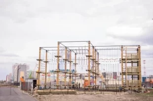 Сейчас на территории местного парка идёт монтаж трёхуровневой конструкции физкультурно спортивного комплекса.