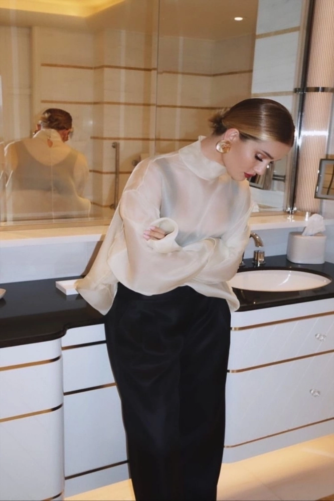Терракотовый, с его кирпично-рыжими нотами, наполняет образ жизненной силой. Этот землистый оттенок можно использовать в аксессуарах — например, в виде стильного пояса, сумки или обуви. Либо же позволить ему зазвучать в одном предмете гардероба — в блузе, юбке или топе.
