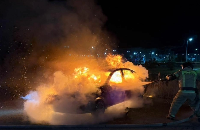 Второе возгорание случилось в Южноуральске на улице Яблочкова, где загорелся припаркованный автомобиль.