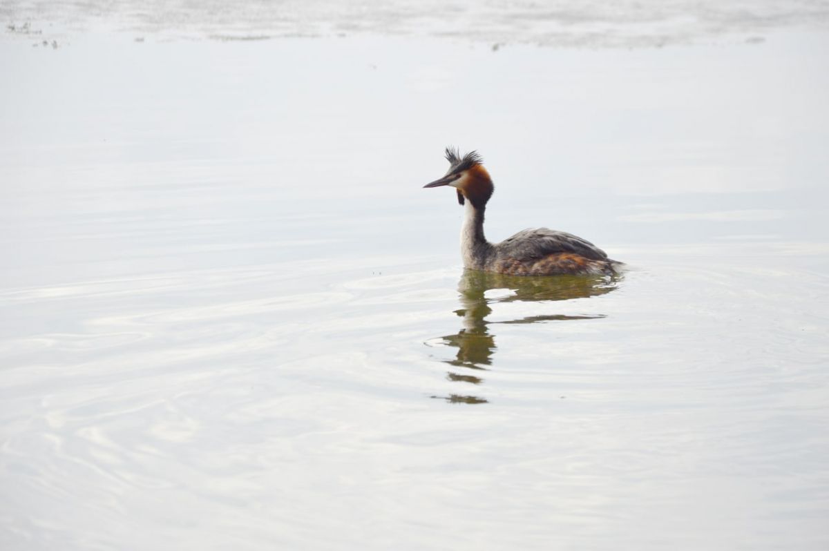 Оказалось, что это чомга или, как ее еще называют, большая поганка – птица, которая обычно живет на водоемах по всей Евразии. Весной эти птицы возвращаются в свои гнезда. После долгого перелета чомга, по всей видимости, ослабла, поэтому и приземлилась посреди каменных джунглей.