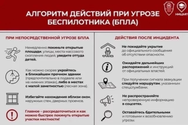 Также жителям Южного Урала оперативно напомнили о правилах безопасности при угрозе атаки беспилотников и алгоритм поведения.