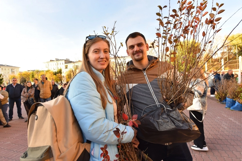 В этом году горожанам предложили 2-3-летние саженцы шаровидной ивы, тополя, венгерской сирени, пузыреплодника, кизильника, сибирской яблони и яблони «Роялти» – все они довольно неприхотливы и отлично приживаются. В ходе раздачи волонтеры вручали каждому участнику по несколько деревьев и кустарников.