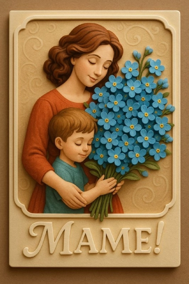 Он напоминает нам, что материнская любовь, её наставления и теплота остаются с нами навсегда, где бы мы ни были и как бы далеко ни занесла нас жизнь. Изображение незабудки становится универсальным языком благодарности: оно украшает праздничные открытки, сувенирную продукцию и нагрудные значки, превращаясь в зримый знак всеобщего почтения.
