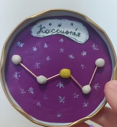 Звёзды из пластилина соединить зубочистками или спичками и наклеить по контуру того или иного созвездия — и поделка готова.