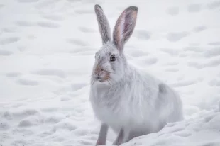 Животное выглядит иначе, чем летом: сейчас у него белая шуба.