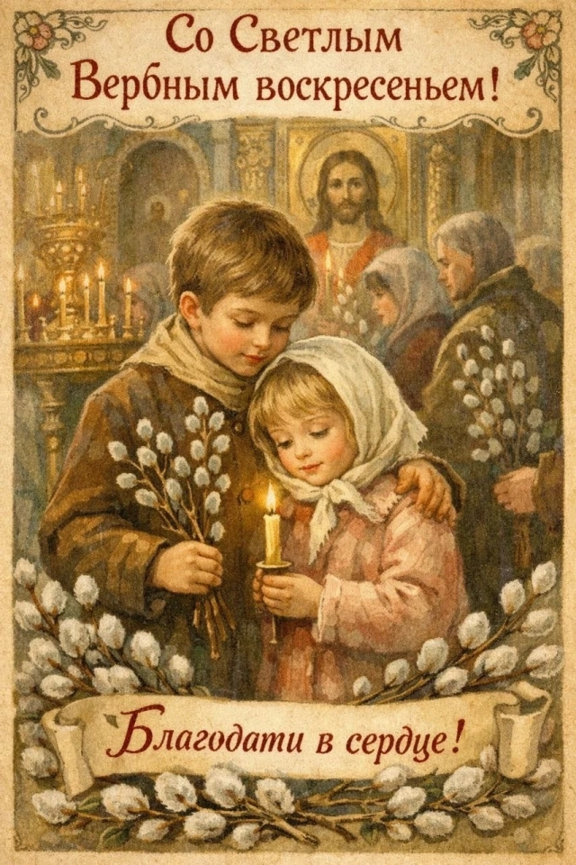 В церковном календаре этот день связан с торжественным входом Иисуса Христа в Иерусалим, когда жители города встречали его пальмовыми ветвями, символом почёта и признания. Однако в России пальмы уступили место вербе — растению, которое первым оживает после зимы и потому стало естественным символом обновления и надежды.