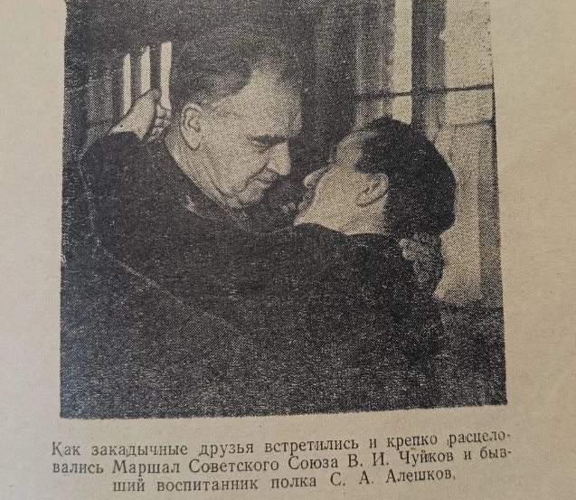 В 1944 году Алешков по содействию Василия Ивановича поступил в Тульское суворовское училище. Из тыла продолжал слать письма на фронт, они долетали до его отца на берегах Одера, в пылу горячих сражений за Зееловские высоты, боёв на подступах к столице Германии. И вот наконец пришёл ответ, которого юный суворовец так долго ждал. Советские войска взяли Берлин.