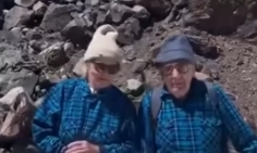 «Мы вдохновляемся вами. Нам сказали, что вам на двоих 160 лет. Какие вы красивые, молодые. Это благословение — встретить такую пару в горах», — говорят на видео альпинисты. Людмила и Валерий поправили: на двоих им 180 лет.