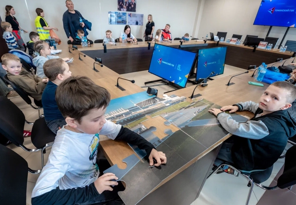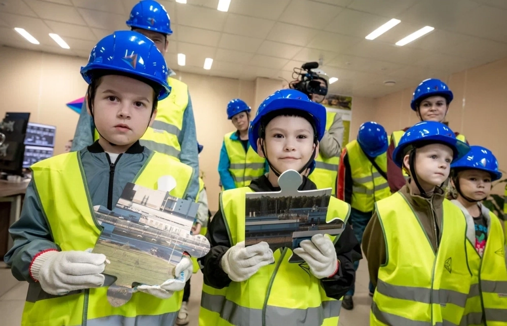 В завершение экскурсии юные гости собрали весь пазл, изображающий ГОК — так наглядно детям показали, что как из кусочков составляется единая картина, так и каждый работник вносит свой вклад в работу предприятия.