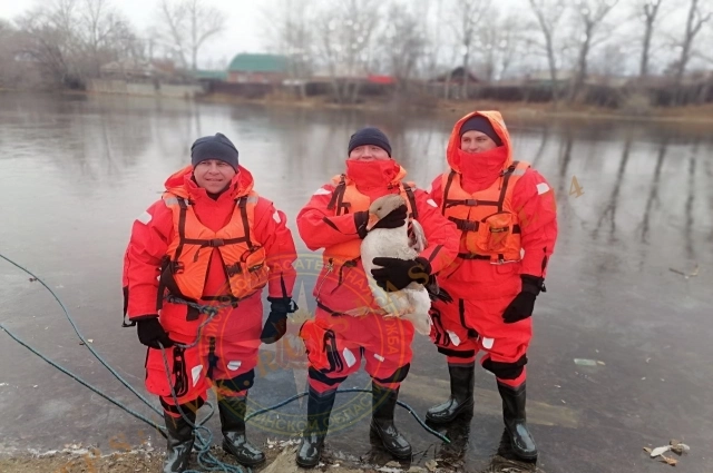 Команда Локомотивного отряда ПСС эвакуировала из полыньи домашнего гуся и передала его владельцу. Обе птицы не пострадали.