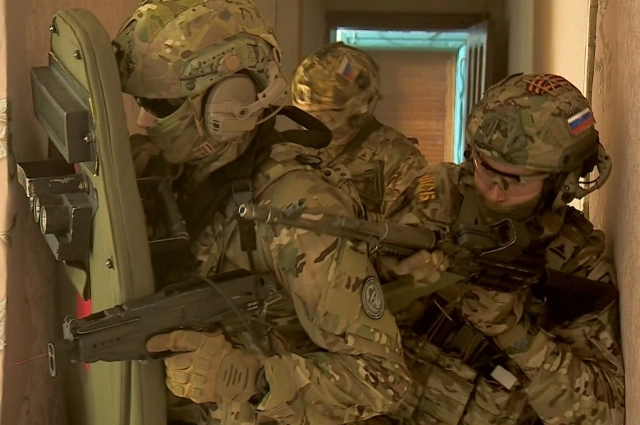 На место происшествия прибывают сотрудники ФСБ - специалисты взрывотехники для обезвреживания взрывных устройств. Проводятся боевые мероприятия по задержанию условных террористов путем организации штурма с задействованием бронетехники.