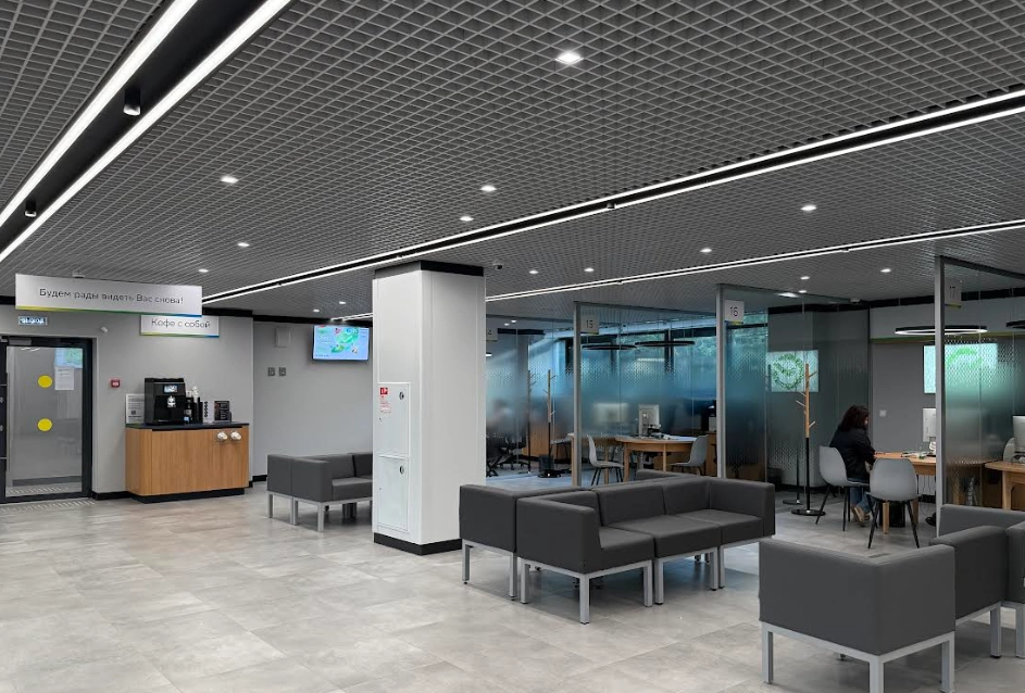 Пространство отделения стало более открытым и удобным. Появились комфортные диваны для ожидания, переговорная комната и детская зона. В офисе теперь можно выпить кофе и зарядить телефон или ноутбук.