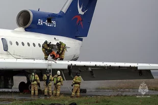 В аэропорту Челябинска пожарные отработали тушение горящего самолета