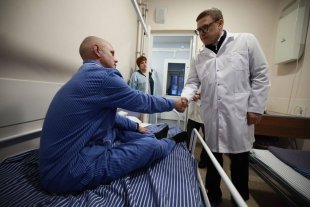 Губернатор проверил ход ремонта и поздравил пациентов с Днем Победы.